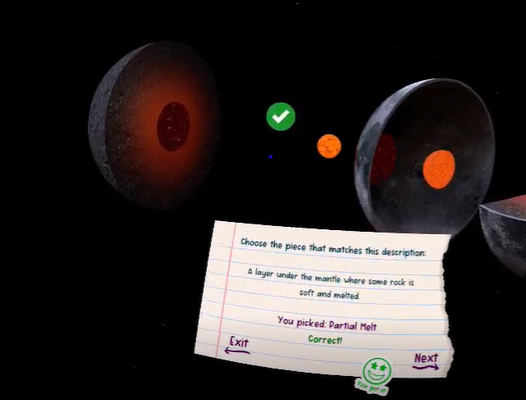 # Age Range The primary target age range for this experience is ages 9 to 11; however, the model is easily adaptable for the 11 to 14 age group (see *Framework Adaptations*). # Curriculum Summary* ## Science: Earth and Space – Ages 9 to 11 Students should be taught to: - Recognize the sun, Earth, and moon as spherical bodies within the solar system. - Use models to explore the structure of planets and moons, including layers beneath their surfaces. - Compare the roles and relationships of the sun, Earth, and moon as part of a wider solar system. # Learning Objectives - Recognize that the moon is a spherical body and orbits Earth. - Identify and name the main internal layers of the moon. - Rebuild an explodable model of the moon to show how its layers fit together. # Key Vocabulary - **Crust:** The moon’s thin, outer layer. It is solid and has bumps, valleys, and cracks. - **Mantle:** The thick layer under the crust, made mostly of rock. - **Partial melt:** A layer under the mantle where some rock is soft and melted. - **Outer core:** The layer around the inner core, thought to be mostly liquid metal. - **Inner core:** The very center of the moon, thought to be solid metal. # Equipment - **VR headsets:** Enough for the planned groups (minimum four recommended; ideally one per student). Ensure the Moon Xplodable is loaded and ready for use. - **Moon diagram:** A suitable diagram of the moon for display on the interactive white board. - **Whiteboards or books (optional):** For note-taking, drawing, labeling, or reflection activities. - **Worksheet (optional):** Printout of the moon for the labeling exercise (see *Extended Learning*). **Note: If a full class set of headsets is unavailable, use the Optional Activities in the During the Experience section to create a class rotation, with students taking turns in the VR experience.** **Our Curriculum Summary offers a simplified and progressive best-fit framework derived from a thorough analysis of multiple curricula worldwide, including those from the US, UK, and the rest of the world. By identifying key common strands, we create curriculum statements that align and map smoothly across all territories, ensuring relevance and consistency in diverse educational contexts. Further territory-specific curriculum libraries can be found on the ClassVR portal.* # Teaching Framework{.objective .objective} ## Prior Learning The Teaching Framework assumes students have no embedded prior knowledge of the key vocabulary introduced in the Xplodable. Before beginning, check students understand that: - The sun, Earth, and moon are part of the solar system. - The moon moves around Earth and can be seen in the sky at different times. - Earth is a planet, and the moon is not a planet but a satellite. - Both Earth and the moon are roughly spherical in shape. ## Before the Experience Begin the lesson by allowing students to spend five minutes exploring the unlabeled moon Xplodable by selecting “Explore” on the menu. Students should observe the different parts of the interactive model and think carefully about what these structures might be. Encourage them to consider if they recognize any parts or remember their names. Students can work individually or in small groups and take notes on a whiteboard, allowing them to share their ideas. ## During the Experience Find a suitable diagram of the moon and using the *Key Vocabulary* describe each individual part using simple, age-appropriate definitions (or use ClassView on the ClassVR portal to show the Xplodable and its labels on the class board). Explain how the different parts of the moon fit together to make up its whole structure. This opportunity enables students to ask questions and clarify their understanding before proceeding. Optionally, show students a video about the moon or direct them to a reliable website for further research. Students can make notes on a whiteboard or in their books to support their learning. ## Key Questions What shape is the moon, and how do we know? {.task} **Example answer:** The moon is roughly spherical, which can be seen when it appears round in the night sky and has been confirmed by images from space. {.info} How does the moon move in space compared to Earth? {.task} **Example answer:** The moon orbits around Earth, while Earth orbits around the sun. {.info} Can you name the main layers of the moon and describe what they are made of? {.task} **Example answer:** Answers may include: the crust is a thin, rocky surface, the mantle is a thick layer of solid rock, the partial melt is rock that is partly melted, the outer core is liquid metal, and the inner core is solid metal. {.info} Next, return students to their devices or headsets and ask them to select "Labels On". This allows them to check and reinforce their memory of the names and locations of each part of the moon as they explore further. Ask students to select "Explode" and the parts will separate and become individual components. Challenge students to drag and drop the exploded parts back into their original positions to rebuild the Xplodable. Discuss any misconceptions, encouraging students to consider how the different layers build up the moon’s overall structure. Following this, students can take the *Beginner* quiz within the Xplodable, testing their knowledge of the moon by attempting to label the model correctly again. For an additional challenge, students can take the *Challenge* quiz, where they match each piece of key vocabulary to its correct definition. The quizzes provide opportunities for both formative assessment during learning or summative assessment to evaluate understanding after the lesson. ## Optional Activities These activities can rotate around the classroom to revisit key vocabulary and concepts, helping students strengthen recall through repetition, discussion, and creative application. Students connect terms and definitions in different contexts, which supports long-term memory and deeper un