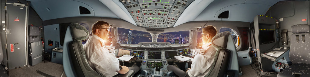 Aircraft cockpit airbus A350 landing in Hong Kong