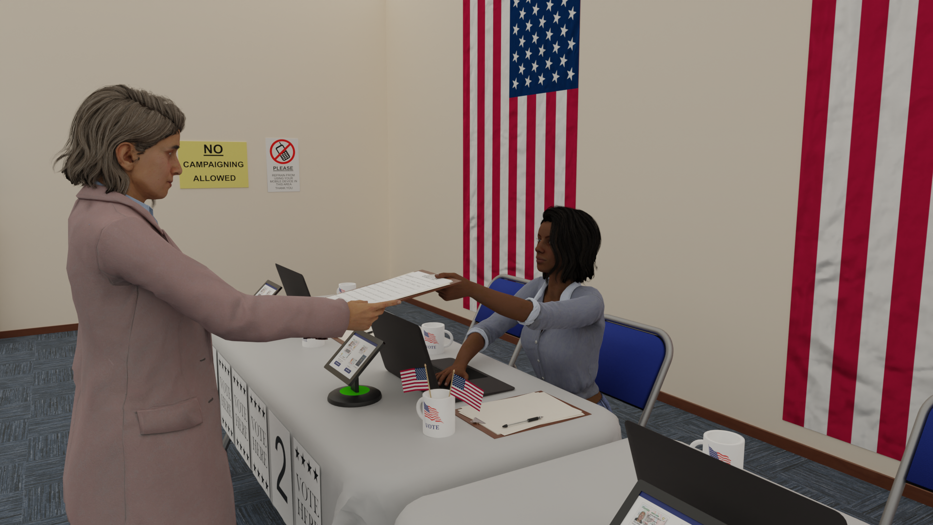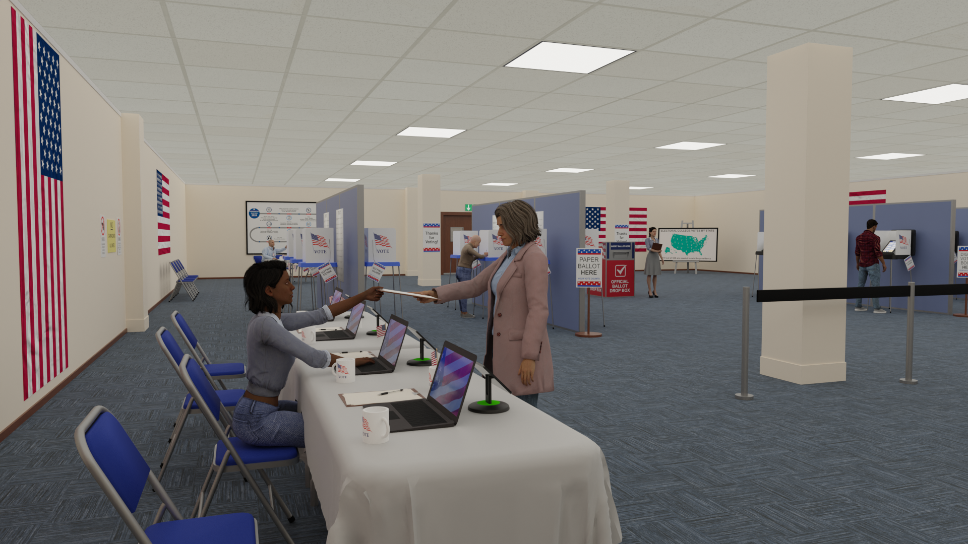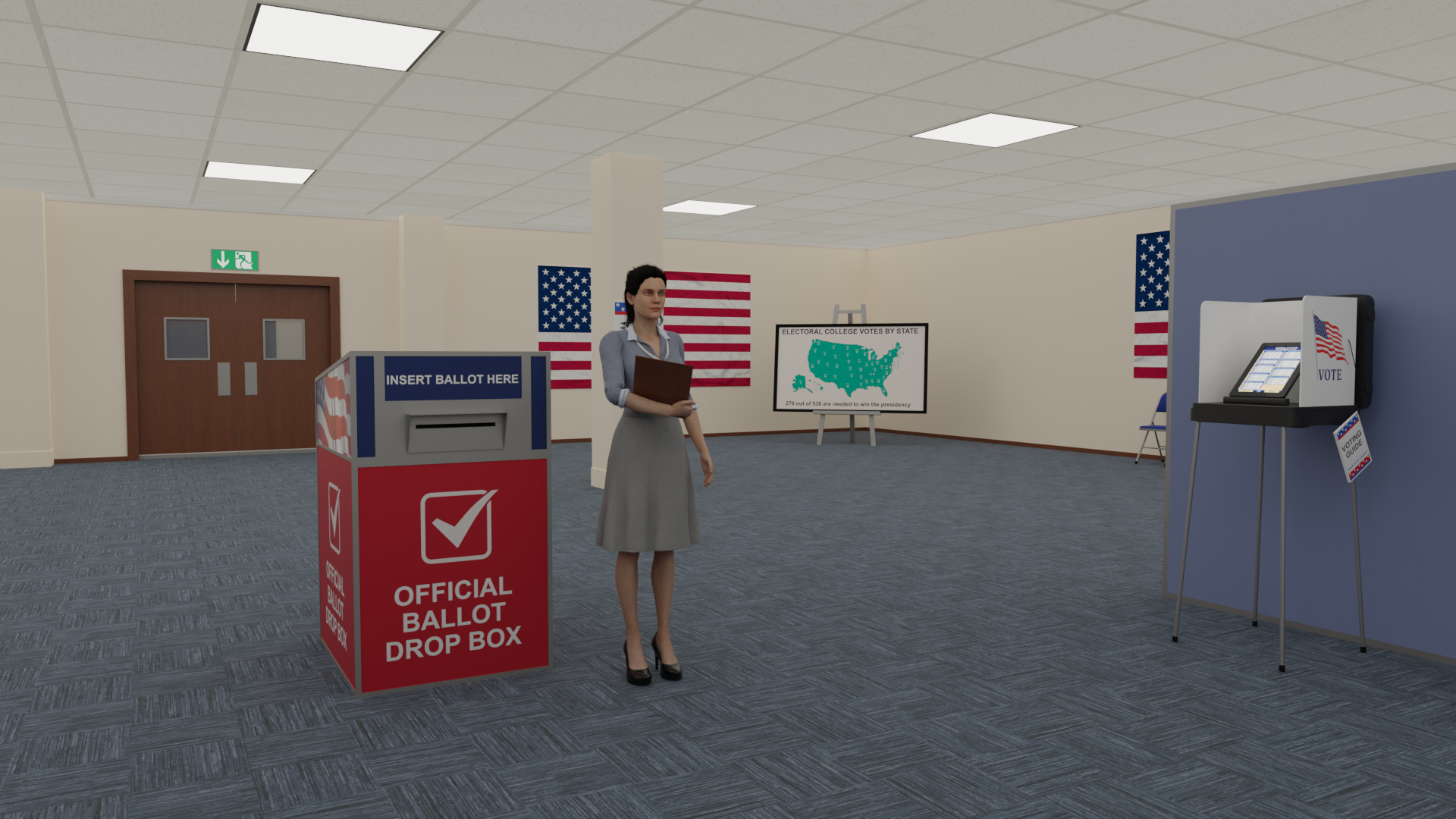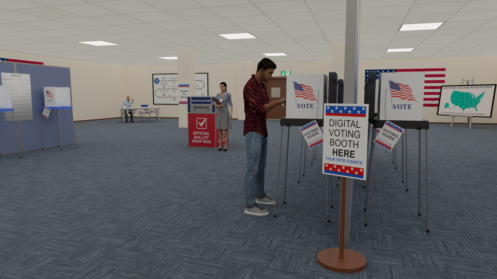 This experience has been created to give students an understanding of the voting process in the United States. It aims to represent a typical voting hall, paper ballot, and devices to provide a general idea, but it serves as an overview rather than a detailed representation of every aspect of voting across the U.S. For example, on the ballot paper, we've used fictional names for all candidates except for the President and Vice President. # Learning Objectives 1: Understand voter experience, including registration and eligibility across the U.S.{.info} 2: Participate in the voting process, identifying both digital and paper ballots{.info} 3: Develop an understanding of the Electoral College and its impact on election outcomes{.info} # Preparing for the Experience Explain to your students that voter registration processes vary from state to state, with each state setting its own rules and requirements for how and when individuals can register to vote. However, U.S. citizenship is one aspect of voting that remains consistent across all states. Citizenship is required to participate in federal elections; however, in local elections, some states will allow non-citizens to vote. Citizens are called to cast their ballots for federal elections on the first Tuesday after the first Monday in November! This nationwide Election Day, set by law in 1845, was perfect for the agrarian society of the time—farmers could vote after the harvest in mild November weather. This date was originally set for presidential elections only, but it now includes congressional races, too. **Preparation Questions** Ask your students: What do you already know about how voting works in your state?{.task} Can you name some ways people can vote (e.g., in-person, mail-in, absentee)?{.task} What challenges do you think people face when trying to vote?{.task} # Step-by-Step Experience Guide Teachers can use this step-by-step guide to lead students through the experience once they are in the headset. Alternatively, students can use the guide below independently, or in a group. ## Prepare to Vote!{.objective .objective1}  You’ve arrived at your polling station, make sure you’ve got everything you need. To your left, you’ll see posters that will guide you through. Remember to check the “You have the Right to” poster, it will give you some key information including, what your eligibility is, whether you can bring a child into the booth, and how much support you can expect to receive. In the United States, these rights haven’t always been guaranteed for everyone. Throughout history, various groups have faced significant barriers to voting, including discriminatory laws, literacy tests, poll taxes, and intimidation at the polls. ## Quick Fire Questions What key information can you find on the "You Have the Right to" poster at the polling station?{.task} Look at the posters, what can you say about accessible voting? How do you think this helps people who need it?{.task} What forms of ID are needed to vote in states that mandate voter ID?{.task} ## Voter Verification{.objective .objective2}  Up next, you'll go through the process of voter verification. Not all states require ID to vote, but you'll need to present a valid form of identification in those that do. This could include a driver's license, state-issued ID, passport, or other accepted documents, depending on the state's specific requirements. As you move toward the poll worker at the front desk, you'll notice an electronic poll book. Historically, voting jurisdictions have used paper poll books that list eligible voters in the district or precinct. However, modern technology is now used more widely. Electronic poll books allow voters to sign in electronically, quickly retrieve a person's personal data, and can help verify a person's photo ID. This is an example of an in-person voting station on election day. You'll see the voter ahead of you receiving her hand-marked paper ballot. After you vote, these paper ballots are typically counted by an electronic scanner or, in rare instances, by hand. ## Quick Fire Questions What do you notice about the use of technology?{.task} What are the benefits of using electronic poll books compared to traditional paper poll books?{.task} ## Paper Ballot{.objective .objective3}  Stepping toward the paper ballot booths, you will see an example of a sample ballot paper. In this experience, we've included presidential and vice-presidential candidates, but the other positions are fictional. Hanging off the paper ballot stand is the voting guide. Voter guides give information about the candidates, their goals, and explain ballot measures, which are issues you can vote to approve or reject. On the walls next to the voting booths, you'll see an enlarged paper ballot, designed to give you an idea of what the paper ballot looks like. Each voting booth is cornered off with a private screen for confidentiality. This approach, known as the Australian Ballot, was first adopted by the American electoral system during the 1888 presidential election. It ensures that voters can cast their ballots freely, without fear of intimidation. ## Quick Fire Questions Why might it be helpful to view a sample ballot beforehand?{.task} What purpose do voter guides serve at polling stations?{.task} What do you notice about the privacy of the voting booths. Why do you think this is important?{.task} ## Digital Ballot{.objective .objective4}  As you approach the male voter, you'll see that he's marking his ballot using a more modern method. Voting technology can vary depending on the state you live in. Most use a combination of electronic and paper technology. However, the use of electronic voting machines isn't without controversy, especially due to concerns over security, the potential for hacking, and lack of a reliable paper trail for audits. ## Quick Fire Questions In the experience, there are different methods of in-person voting. Can you name some benefits