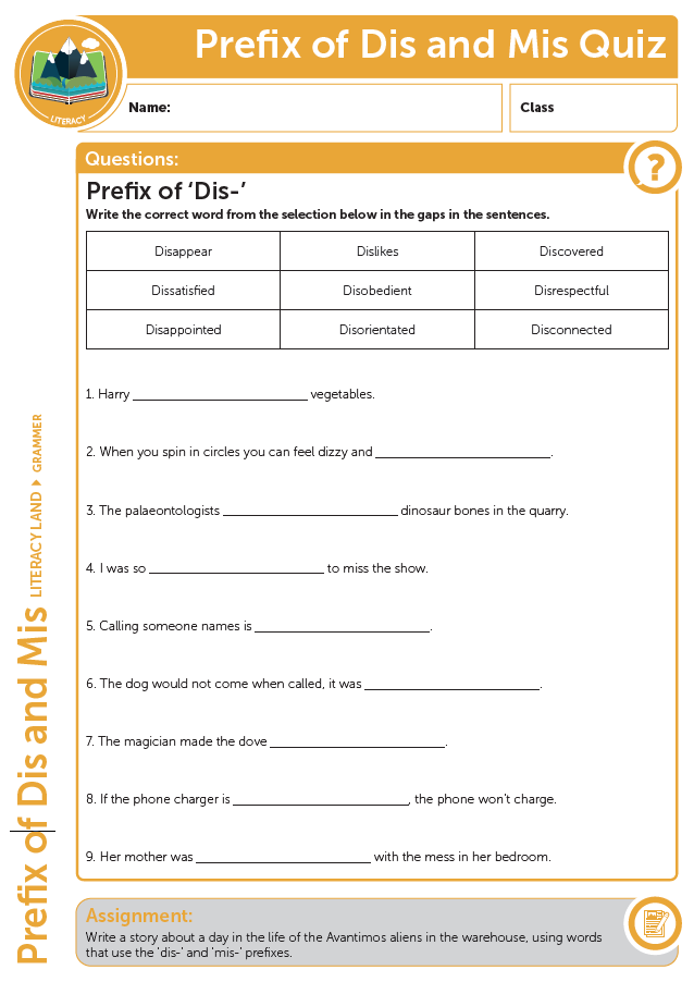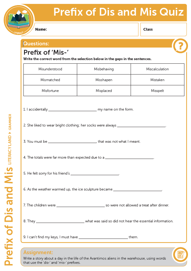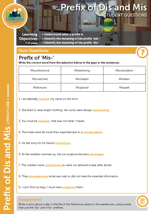 Prefixes Dis- and Mis- Alien Warehouse Teacher Notes